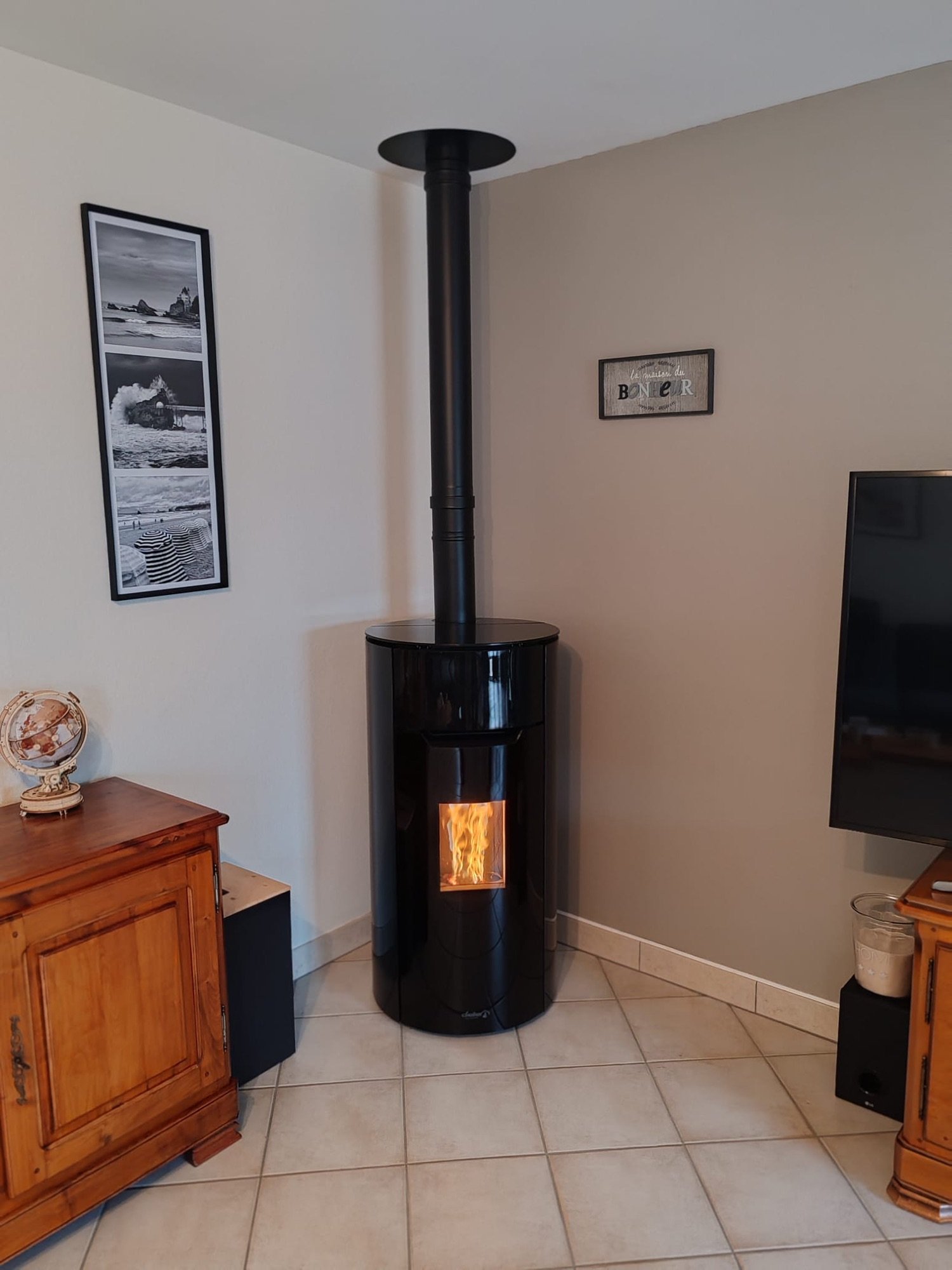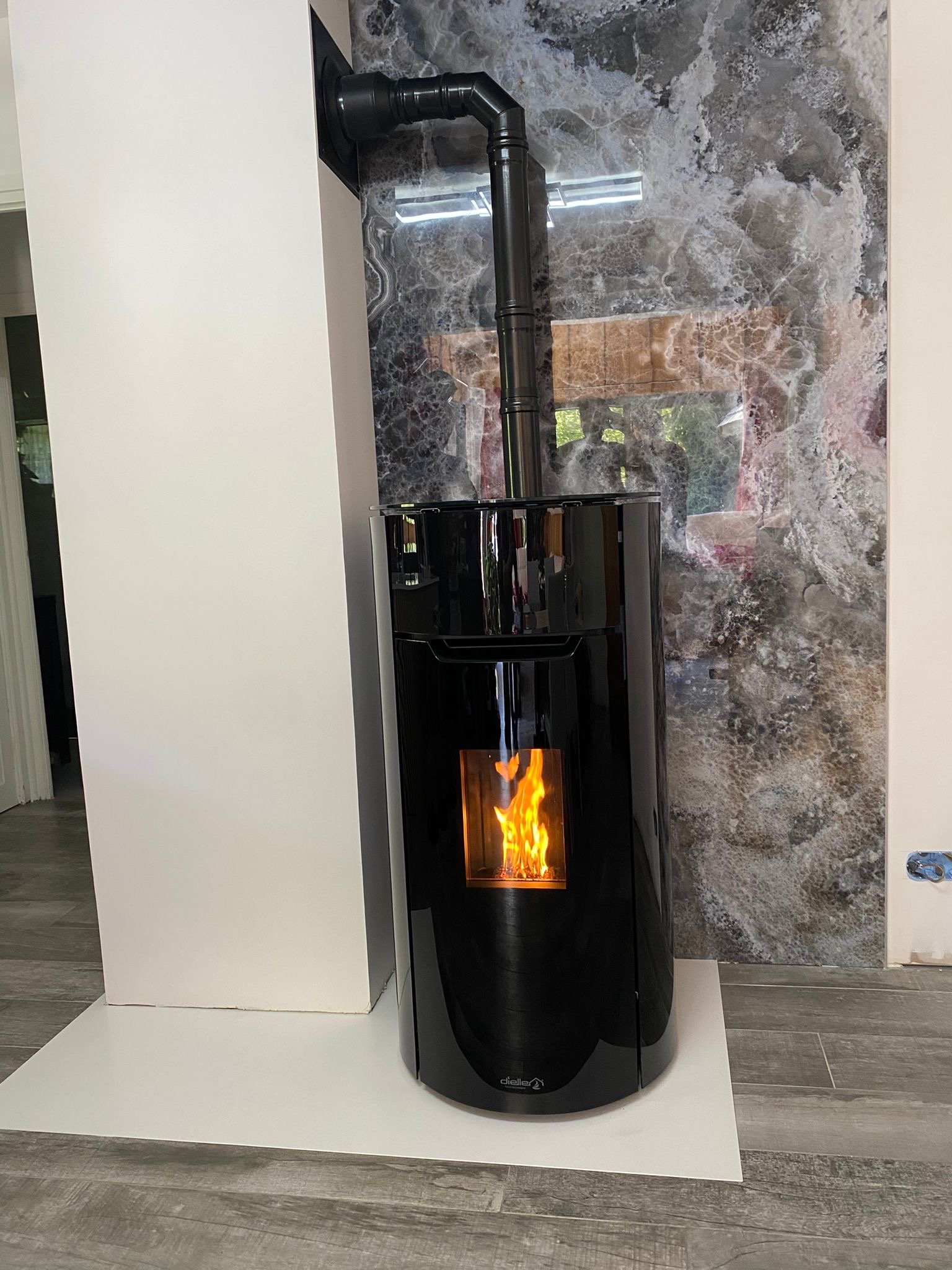 Poêle à pellet au design essentiel mais extrêmement élégant.