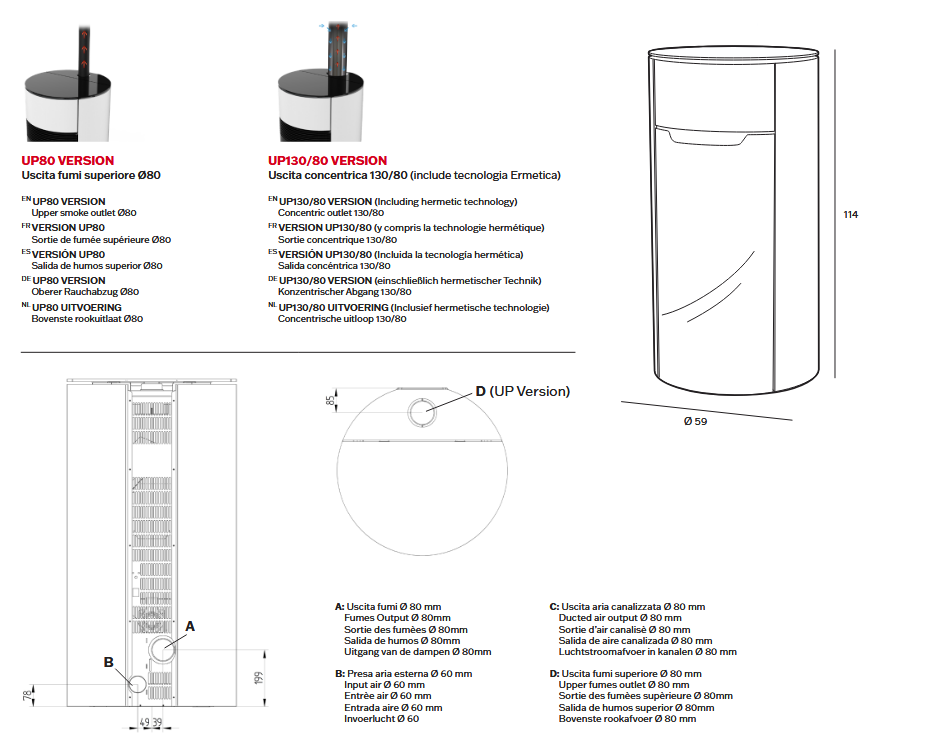 Disponible aussi en version ‘Up’ avec sortie fumées supérieure.